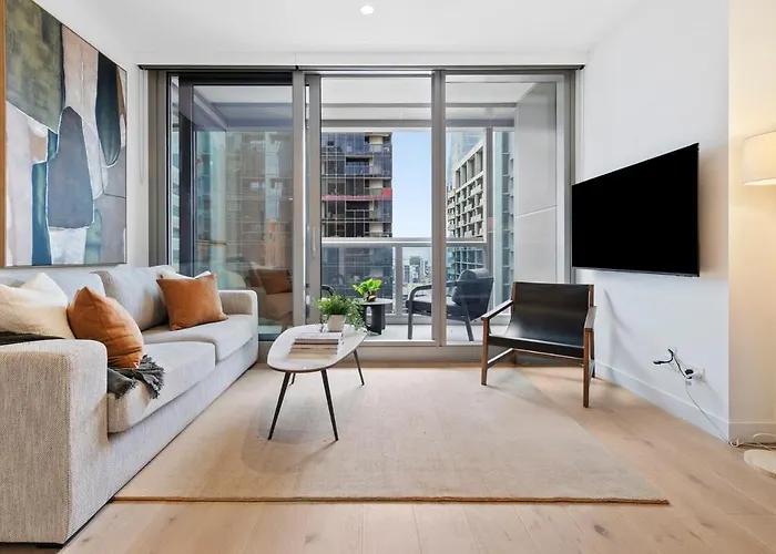 Das Apartment Luxe 1Br Study Balcony Pool Gym Sauna Steam Melbourne City bietet einen Blick auf die Stadt und liegt ungefähr 20 Fußminuten von der Eureka Skydeck 88 Aussichtsplattform entfernt Dieses Apartment empfängt seine Gäste mit einer Sauna und einem Hallenbad und liegt in 700 Meter Entfernung vom Etihad Stadium.